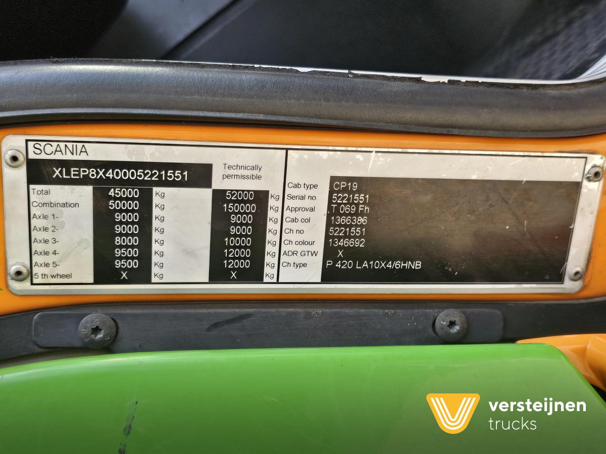 Scania P420 10x4/6 Lift axle. Hub reduction. Manual gearbox. Retarder. 3.5'fth wheel. Technical max Vehicle weight: 54.000 kg. Technical Max combination weight: 150.000 kg. |
