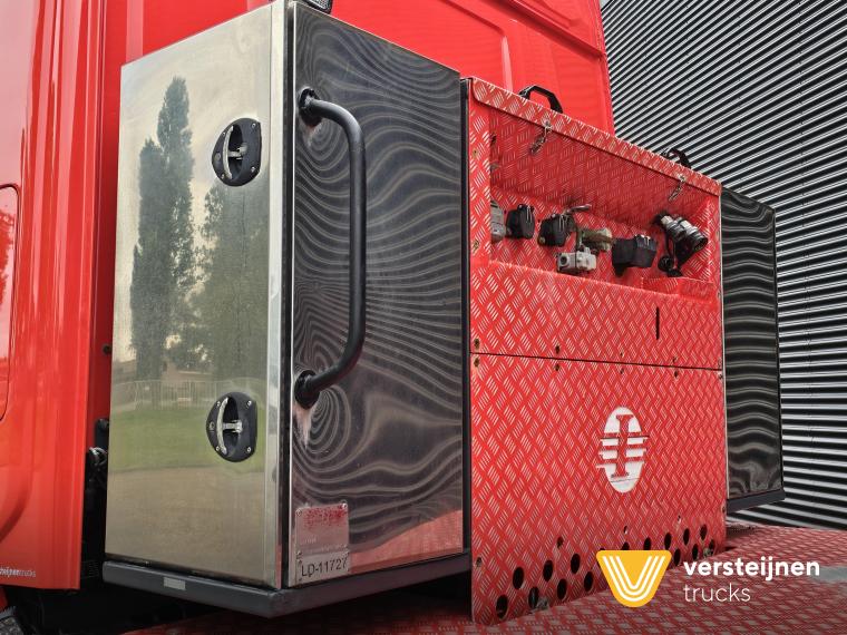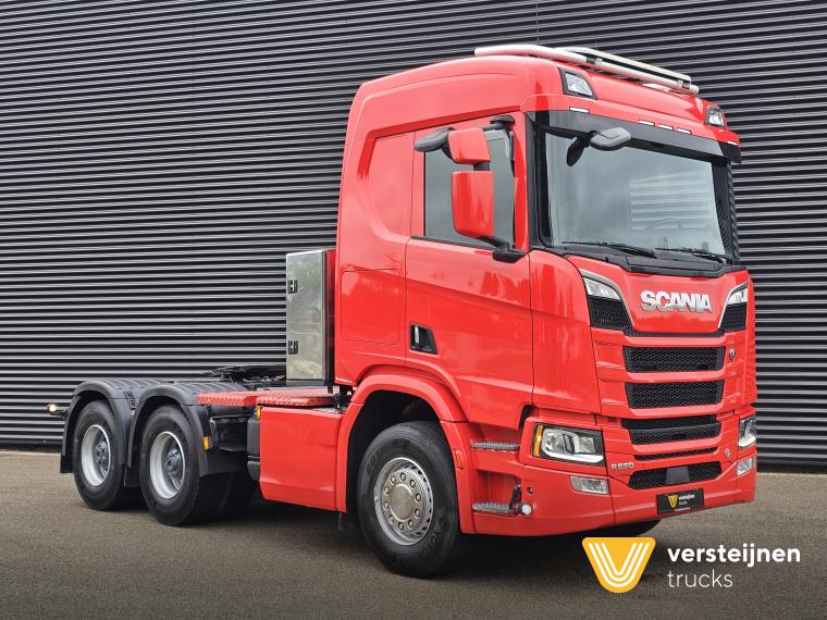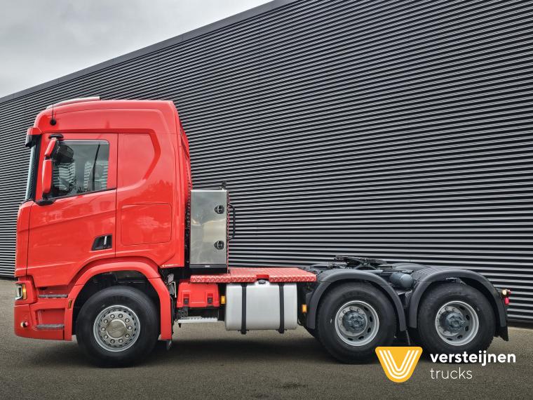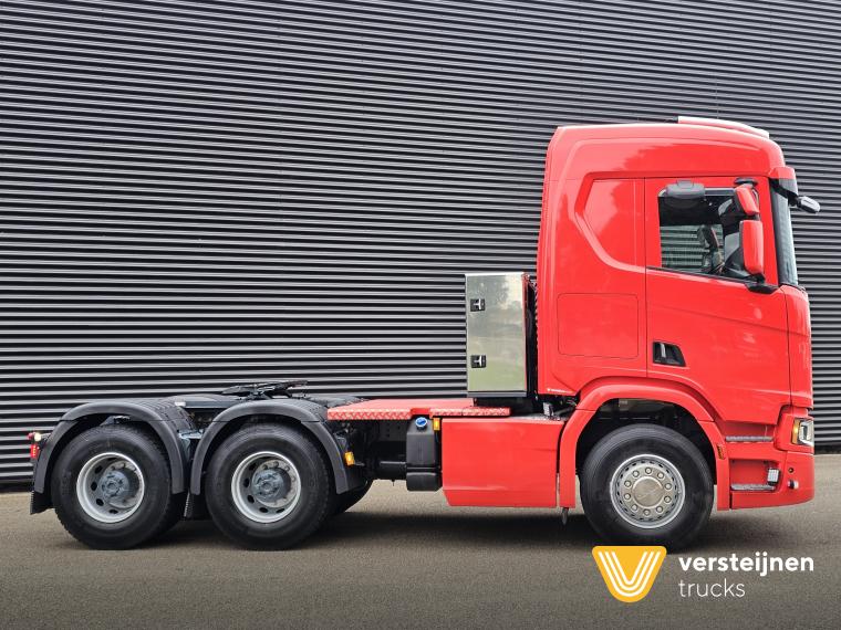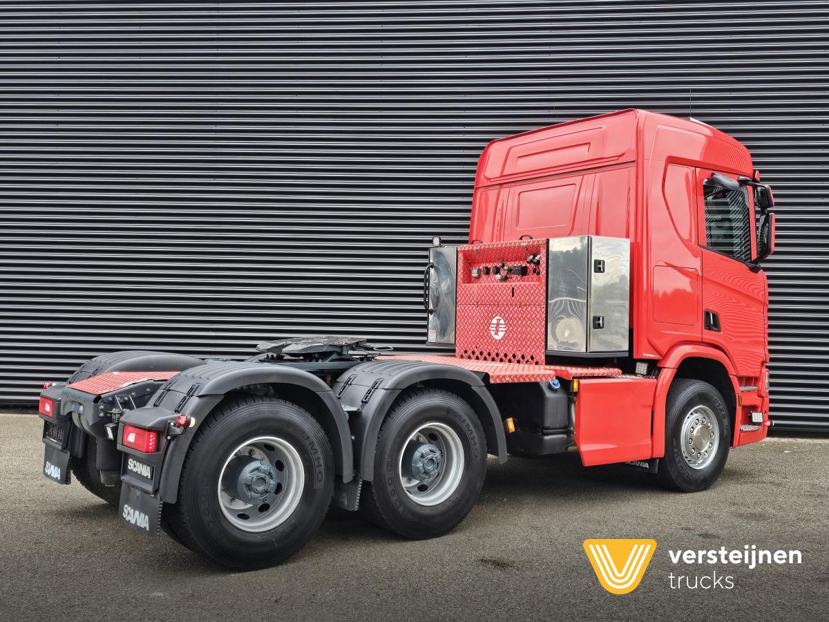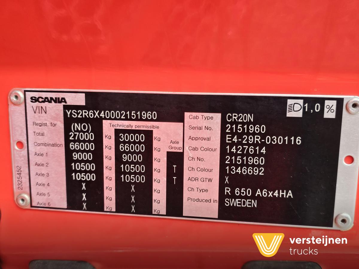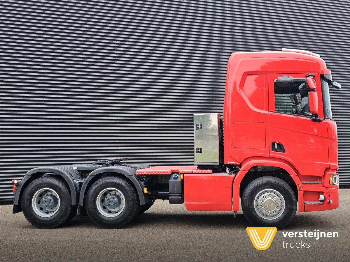 Scania R650 A6x4HA 315 cm wheelbase. Adjustable fifth wheel. Spring / air suspension. Hub reduction. Hydraulic. Toolbox behind the cabin. |
