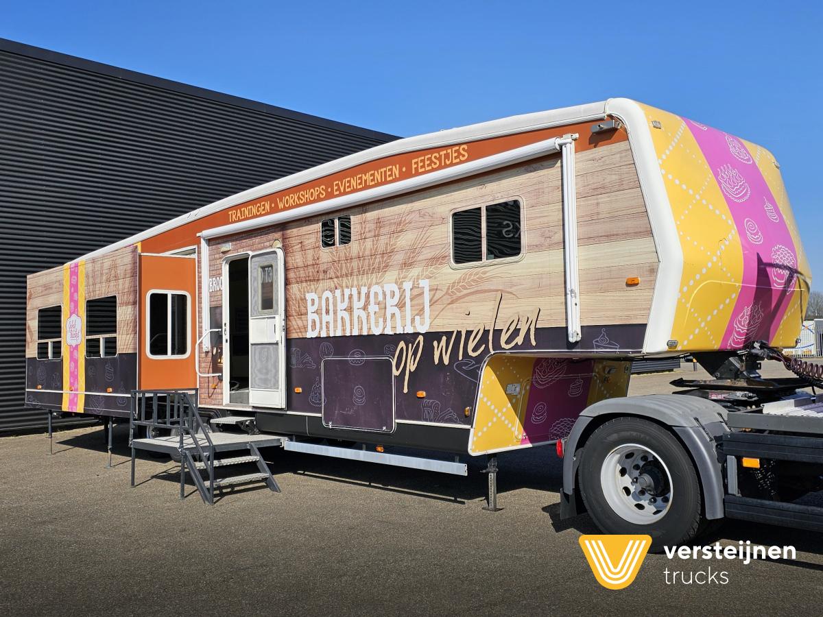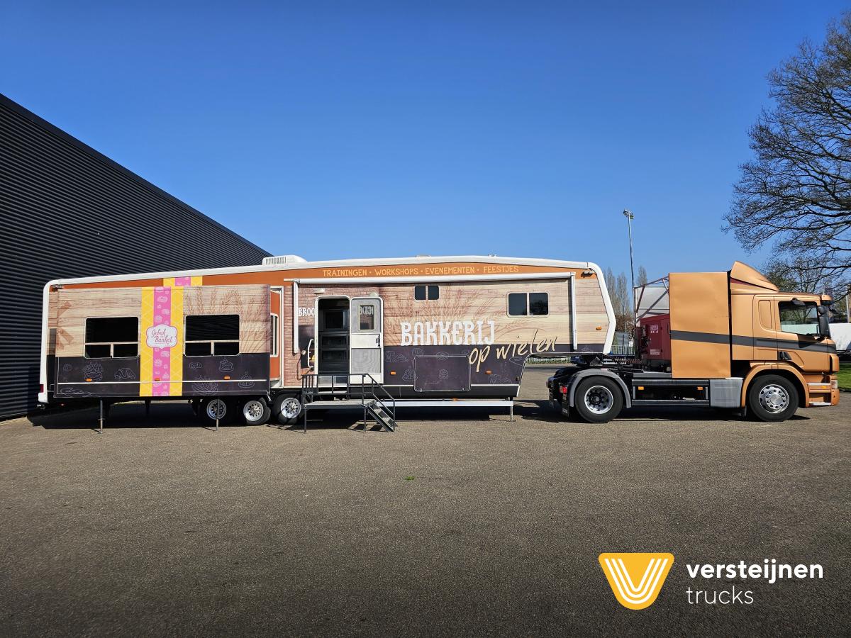 Scania P280 First registration: 25-02-2011. in combination with: TRAVEL SUPREME INC First registration: 10-11-2006. Max weight: 9.000 kg. Trailer is used as mobile training room. 2 x slide out. Toilet. Kitchen. Stove. Ovens. Fridge. Heater. |