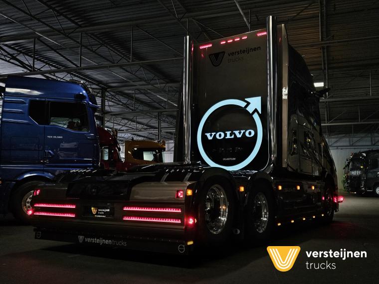 Volvo VT5 Aero / Nr 1. Volvo FH Aero XXL cabin. + 25 cm Compared to the standard XL cabin. Fully built with many extras! Classic light box. Beacons. Top lights. Air horns. Smooth back wall with lightning. Standing exhaust. Custom made hose rack with illuminated Volvo logo. Custom made rear bumper with LED bars. Work lights around the truck. Front view camera. Rear view camera. Big sun visor. Bumper spoiler with 4 Lazer lights. Lamp bars under the side skirts. Complete catwalk on the chassis. Full spec truck. Full air suspension. Alcoa dura bright wheels. Adjustable fifth wheel. PTO. VEB+ engine brake. Parking cooler. Parking heater. Luxury leather seats, Heated and ventilated driver seat. |
