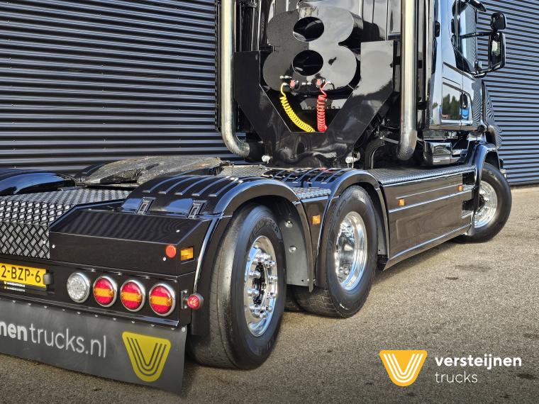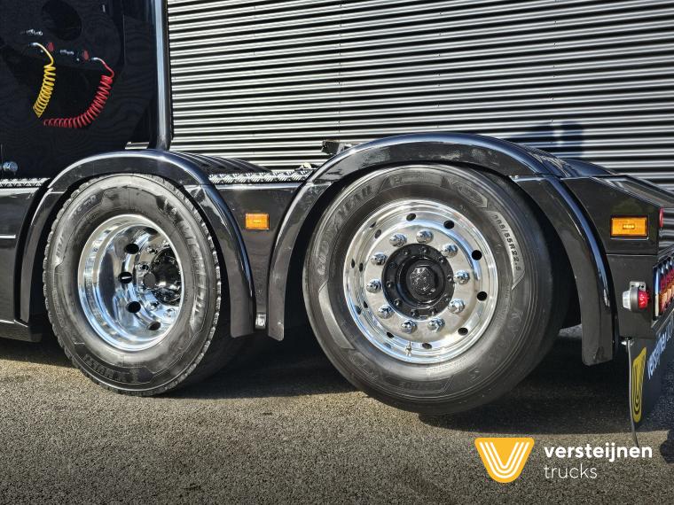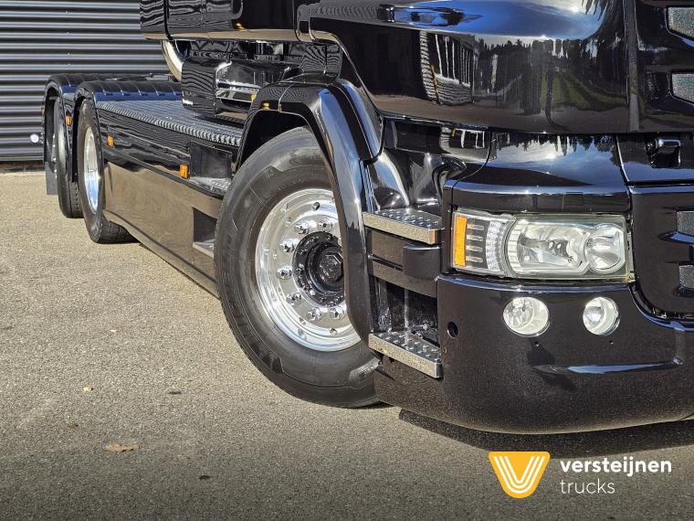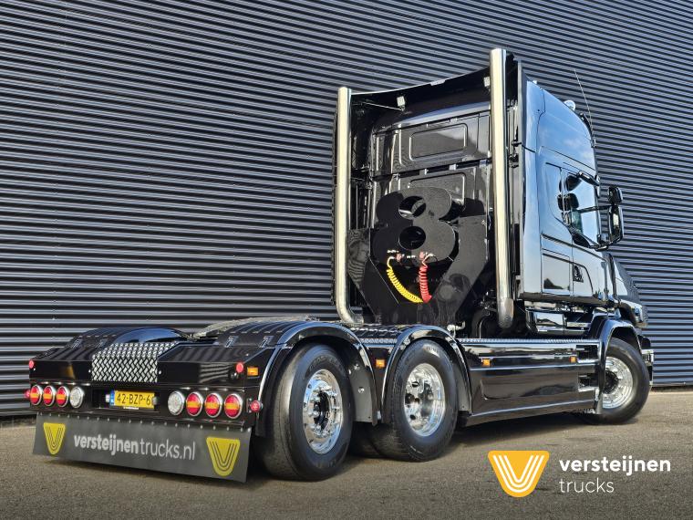 Scania Torpedo R520 V8 6x2*4 / Lift steering axle. 410 cm wheelbase. Adjustable fifth wheel. Full air suspenison. Retarder. Hydraulic. Leather seats. Heated and ventilated driver seat. Microwave. Full covered chassis. V8 hose rack. Rear bumper with LED lights, Air-horns. Alcoa dura bright wheels. |