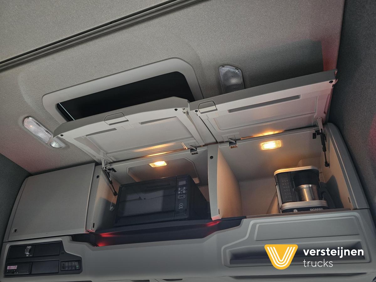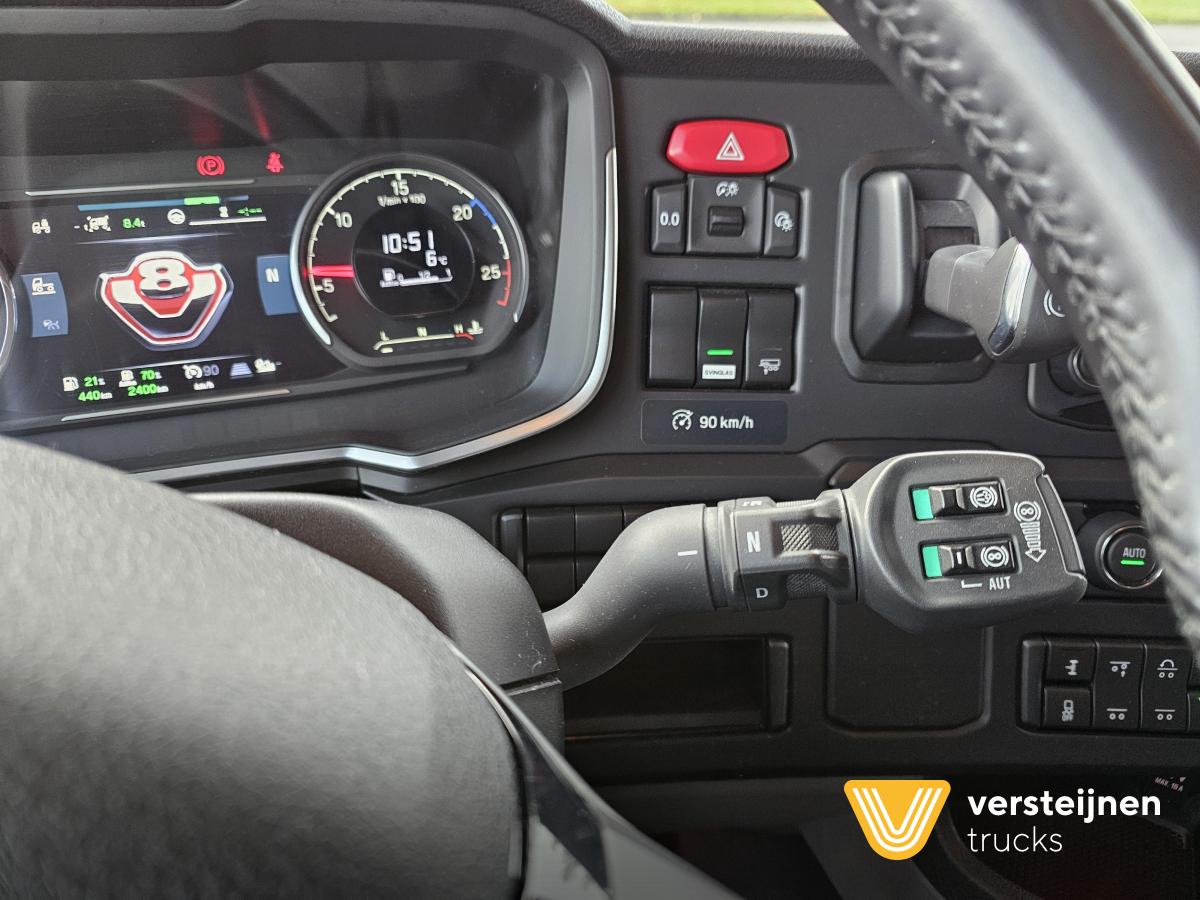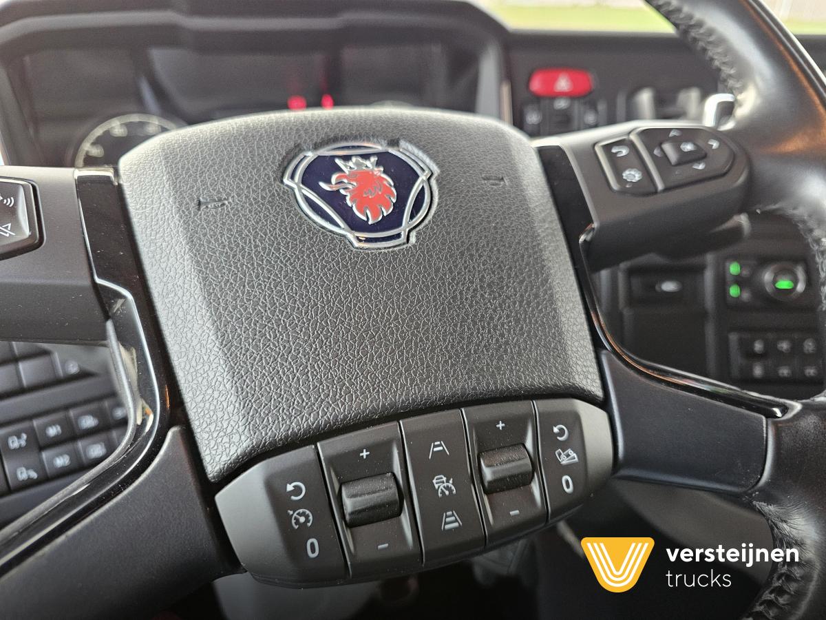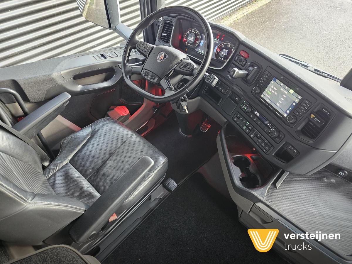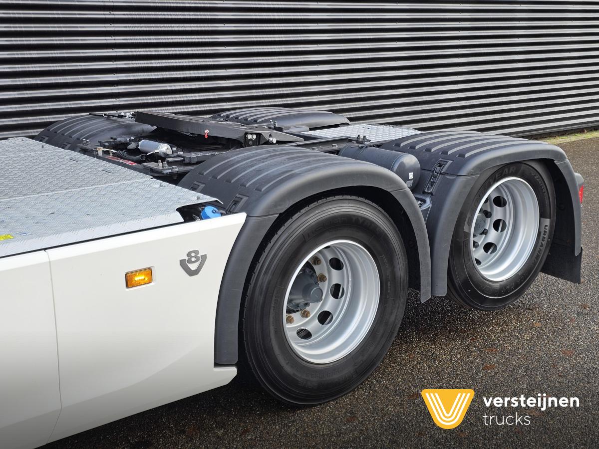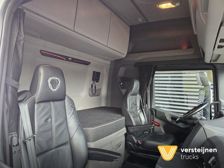 Scania S660 V8 6x2 Boogie. Retarder. Full air. Adjustable fifth wheel. 2 x diesel tank: 565 ltr + 310 ltr. Leather seats. Heated and ventilated driver seat. Microwave. Coffee maker. Fridge. |