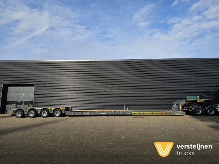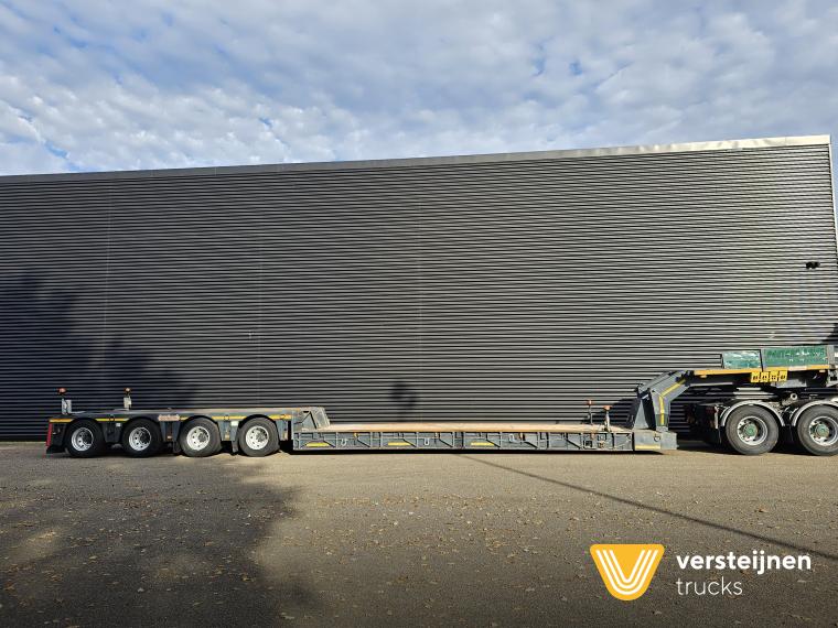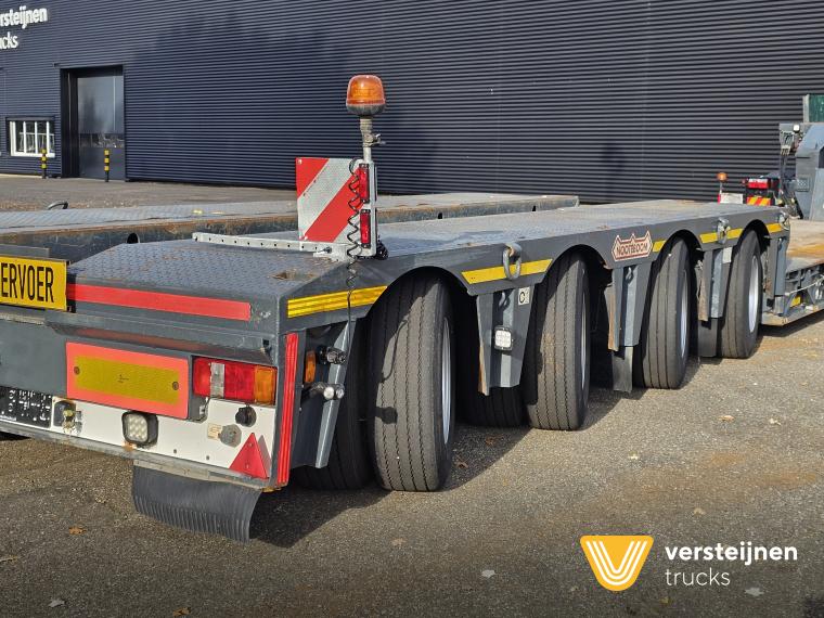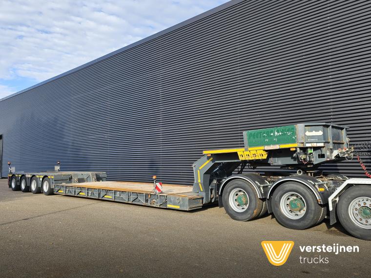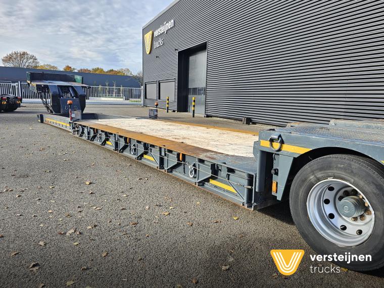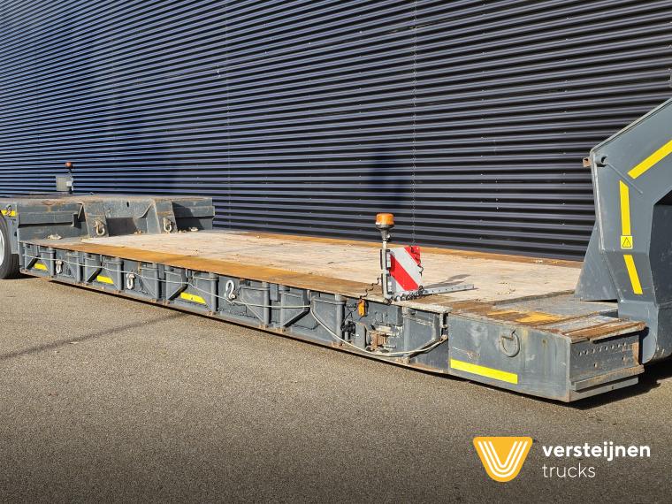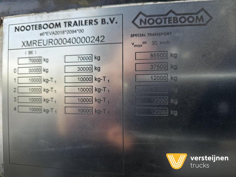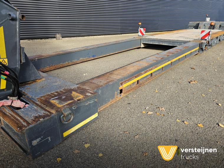 Nooteboom Euro 70-04 Max technical weight, Special transport: 85.500 kg. Hydraulic suspension. Wireless remote control. Removable neck. 525 cm extendable. |