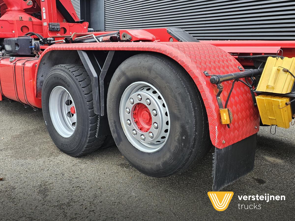 Scania R520 V8 Full air suspension. Retarder. Engine PTO. Crane: Palfinger T.E140Z95 Year 2005 Container system. Hiab Type: XR21S51 21.000 kg. 510 cm. till extended bumper: 600 cm. |